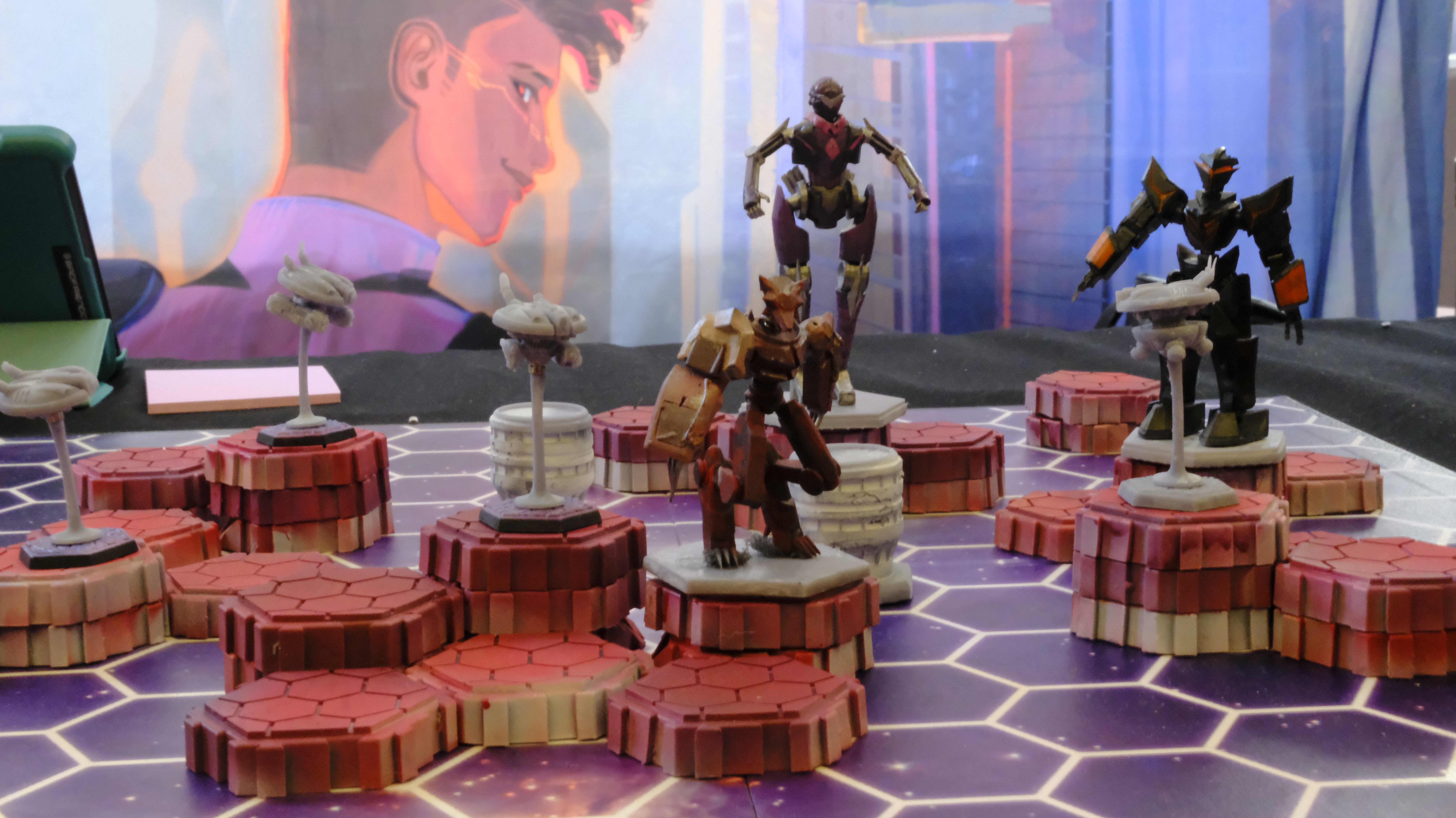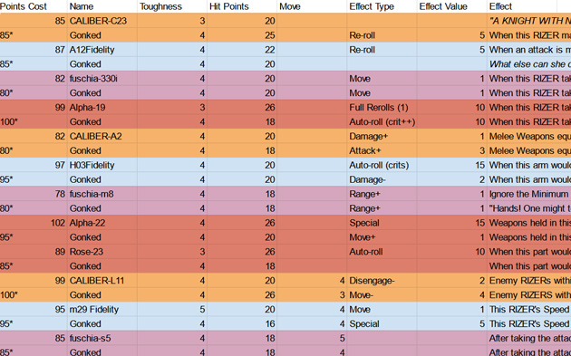 I oversee the full development lifecycle, from concept and early prototypes through iterative playtesting and convention demos. My design work sees me primarily using spreadsheets to numerically balance game mechanics. I Engineer data-driven balancing systems using spreadsheets and QA analytics to refine mechanics for competitive balance and accessibility. At its core, SUNRIZE : MECHANITE is designed to be modular, fast paced, and accessible. Using an interchangeable mech-building system and modular game pieces to allow players to express skill and strategy.
